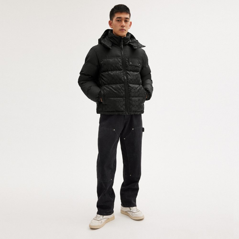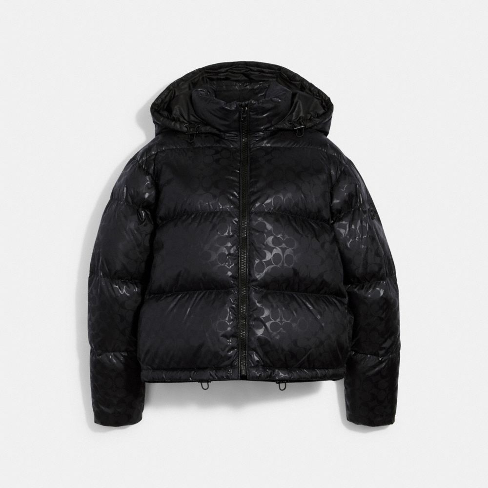 Coach black puffer clearance jacket, COACH Signature Details Belted Puffer in Black Lyst clearance