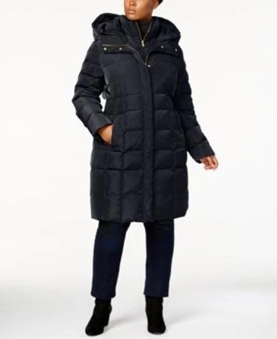 Cole Haan Signature Plus Size Layered Down Puffer Coat In Navy