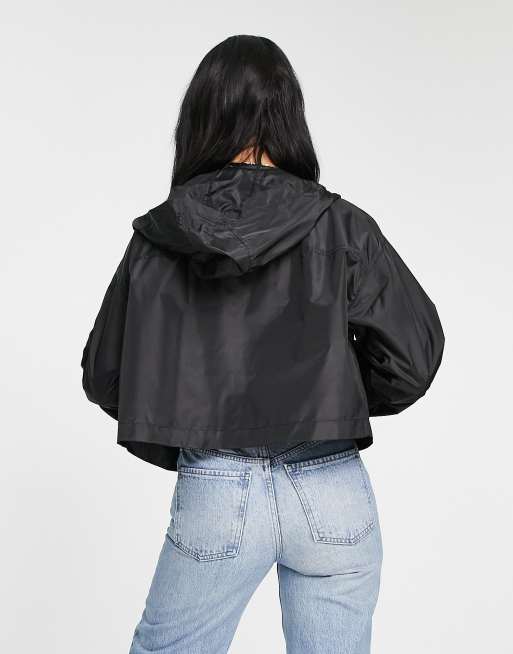 ASOS DESIGN Petite cropped rain jacket with hood in black