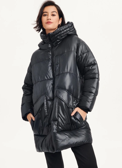 Dkny Women s Longline Token Logo Puffer Jacket In Black
