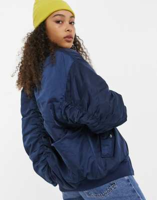 Dua Lipa x Pepe Jeans bomber jacket with textured detail in navy