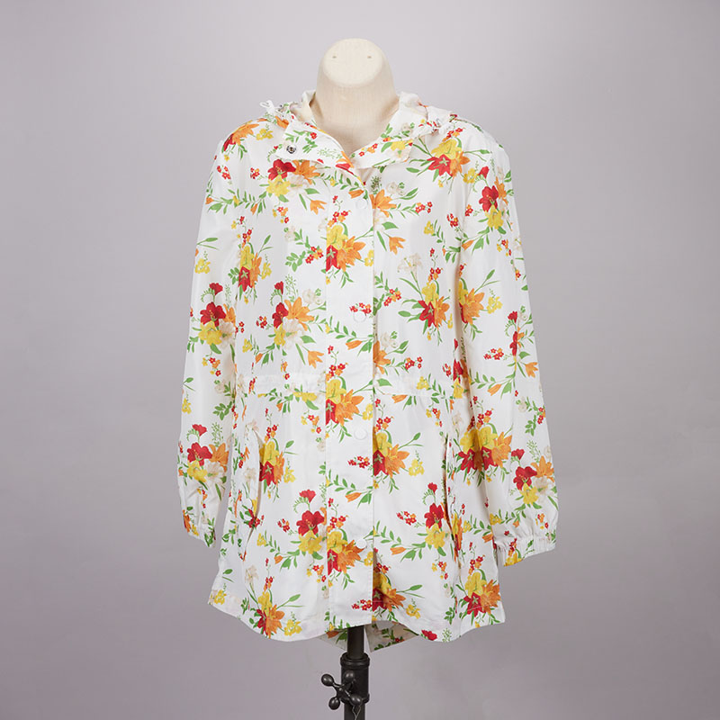 Flower clearance rain jacket, Floral Print White Rain Jacket Cracker Barrel clearance