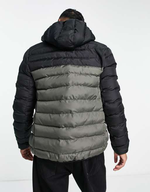 French connection down clearance jacket, French Connection contrast puffer jacket with hood in black khaki clearance