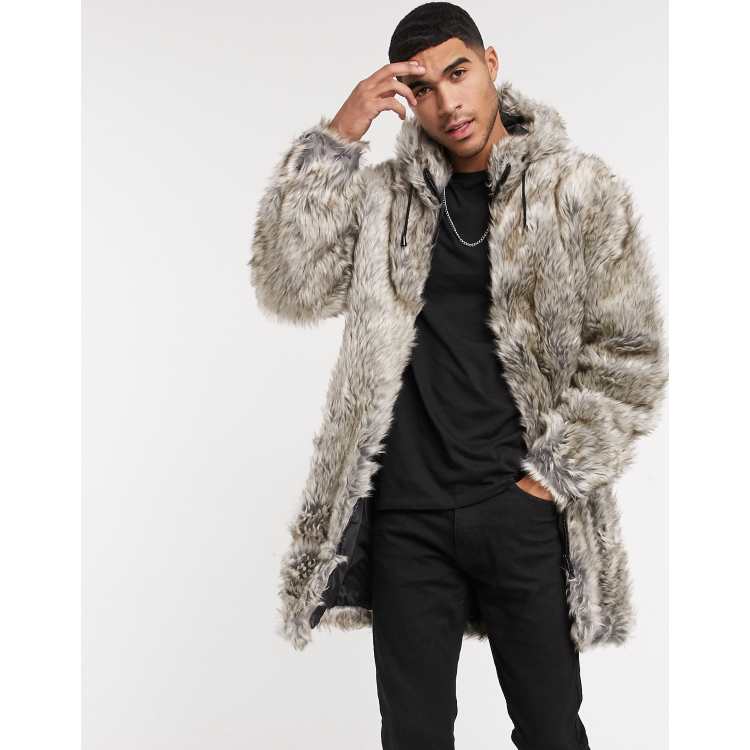 Grey faux fur clearance longline coat, Reclaimed Vintage Inspired Unisex Longline Faux Fur Coat Grey for clearance