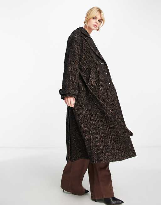 Herringbone long belted clearance coat