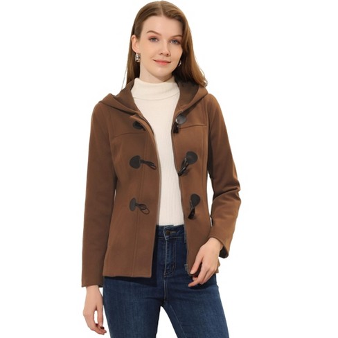 Hooded toggle coat clearance womens, Allegra K Women s Casual Winter Outwear Hooded Button Toggle Duffle Coat Dark Brown X Small clearance