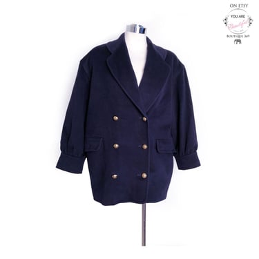 Vintage Jaeger Navy Wool Pea Coat Woman s Size 8 Large Made In England