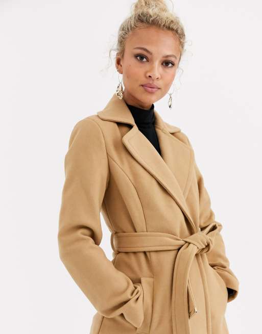 Lipsy Camel Premium Wool Blend Self Tie Wrap Trench Coat