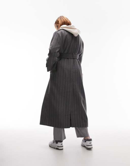 Long a line clearance wool coat, Topshop long line wool blend coat in gray pinstripe clearance