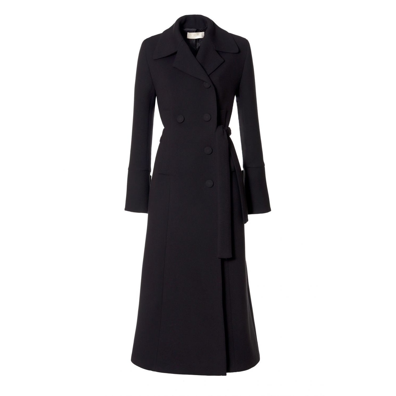 Long black designer clearance coat, Black women designer real leather jacket long trench overcoat with belt clearance