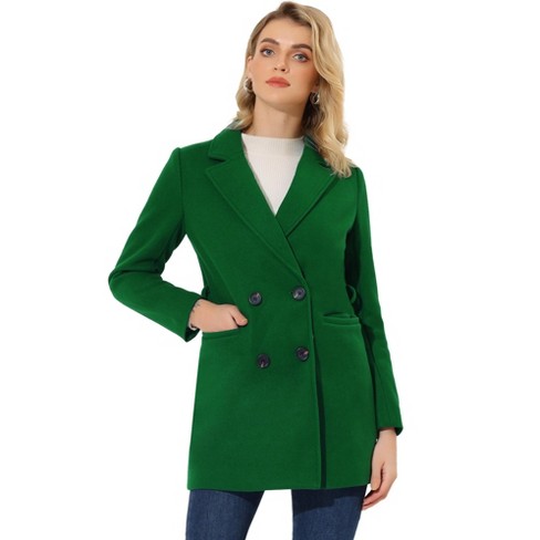 Allegra K Women s Notch Lapel Double Breasted Belted Mid Long Outwear Winter Coat Dark Green Small