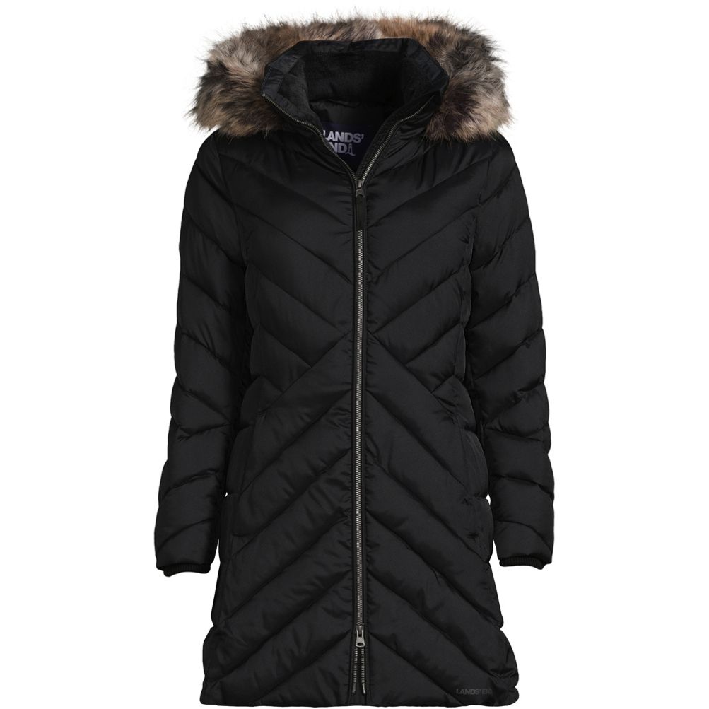Women s Lands End Faux Fur Hood Long Down Winter Coat