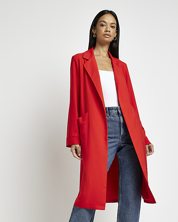 Red longline duster jacket