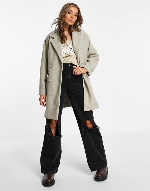 Longline peacoat clearance, Pull Bear tailored longline pea coat in beige ASOS clearance