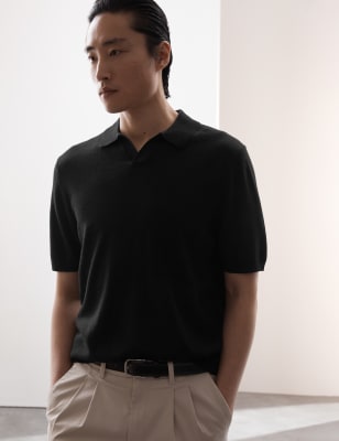 Pure Extra Fine Merino Wool Knitted Polo Shirt M S US
