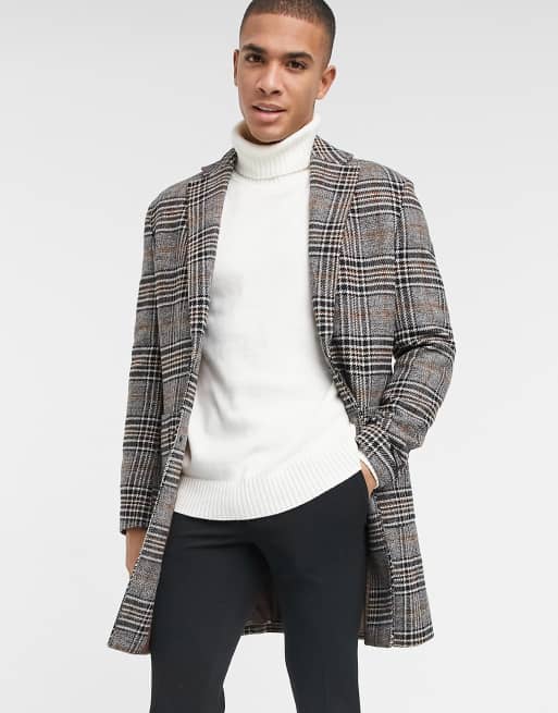 Mens grey check clearance overcoat, Mens Wool Trench coat clearance