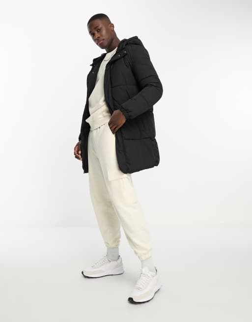 Mens puffer longline clearance jacket, Jack Jones longline puffer jacket with hood in black clearance