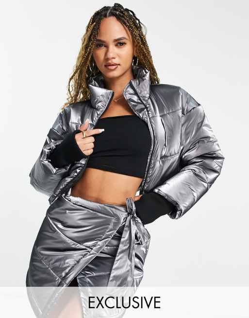 Metallic cropped puffer clearance jacket, Metallic Cropped Puffer Jacket GATE clearance