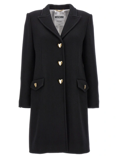 Moschino clearance black coat, Moschino Heart Button Coat In Black ModeSens clearance