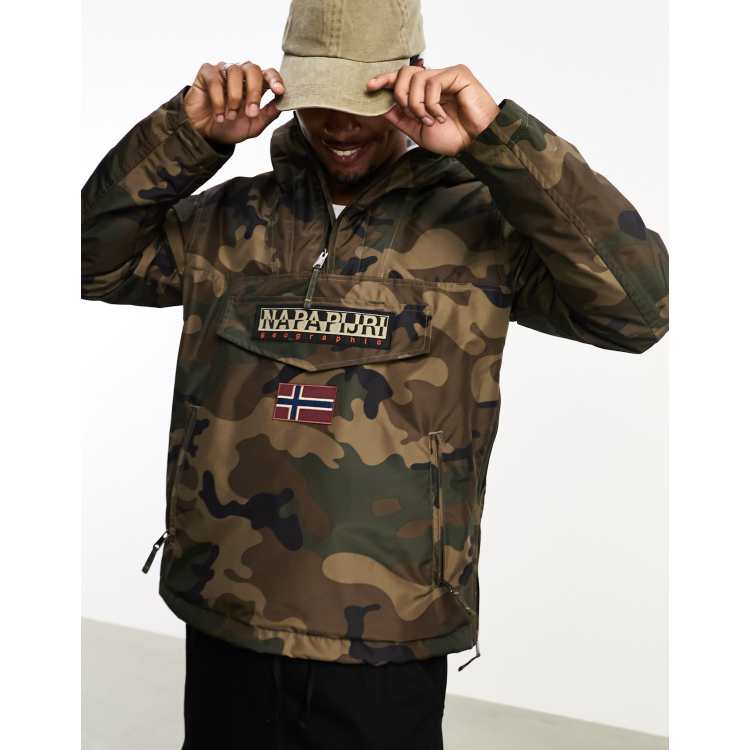 Napapijri Rainforest water repellent overhead jacket with front pocket in camo