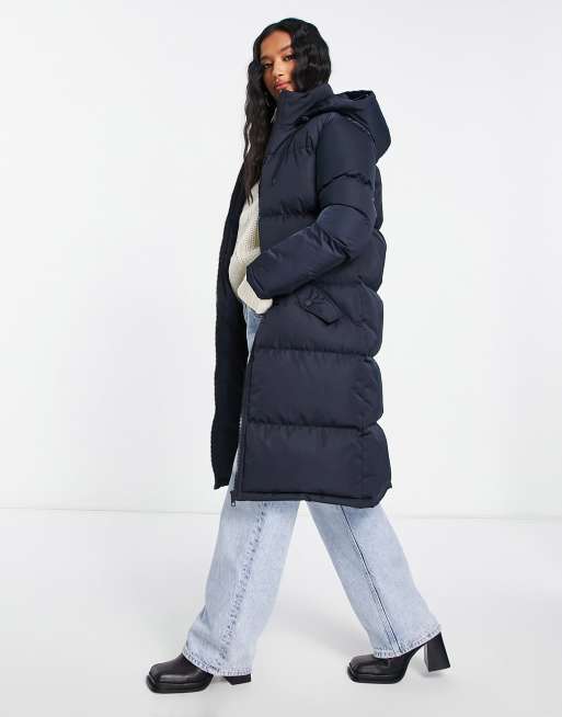 Navy longline puffer clearance jacket, Urban Code longline puffer coat with zigzag quilt in navy clearance