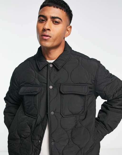 New look quilted clearance jacket, Navy Quilted Collarless Jacket New Look clearance