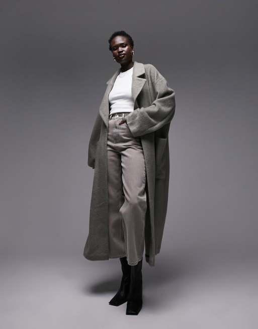 Topshop Tall brushed throw on coat with patch pockets in moss green