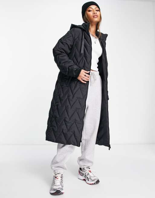 Nike longline padded jacket with back swoosh in black ShopStyle