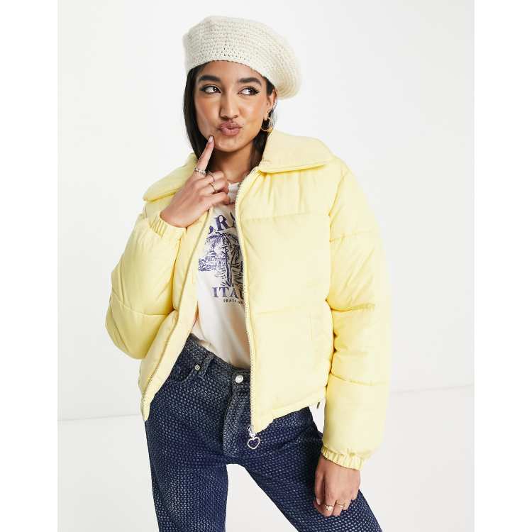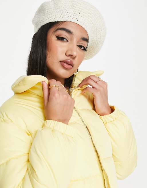 Pastel yellow puffer clearance jacket, Monki short padded jacket in light yellow BEIGE clearance