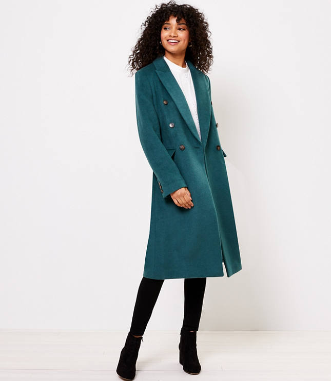 Petite Collar Detail Double Breasted Wool Maxi Coat