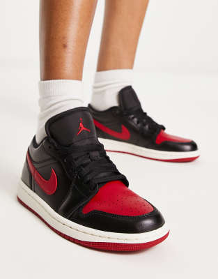 Jordan AJ1 Low trainers in black and gym red ASOS
