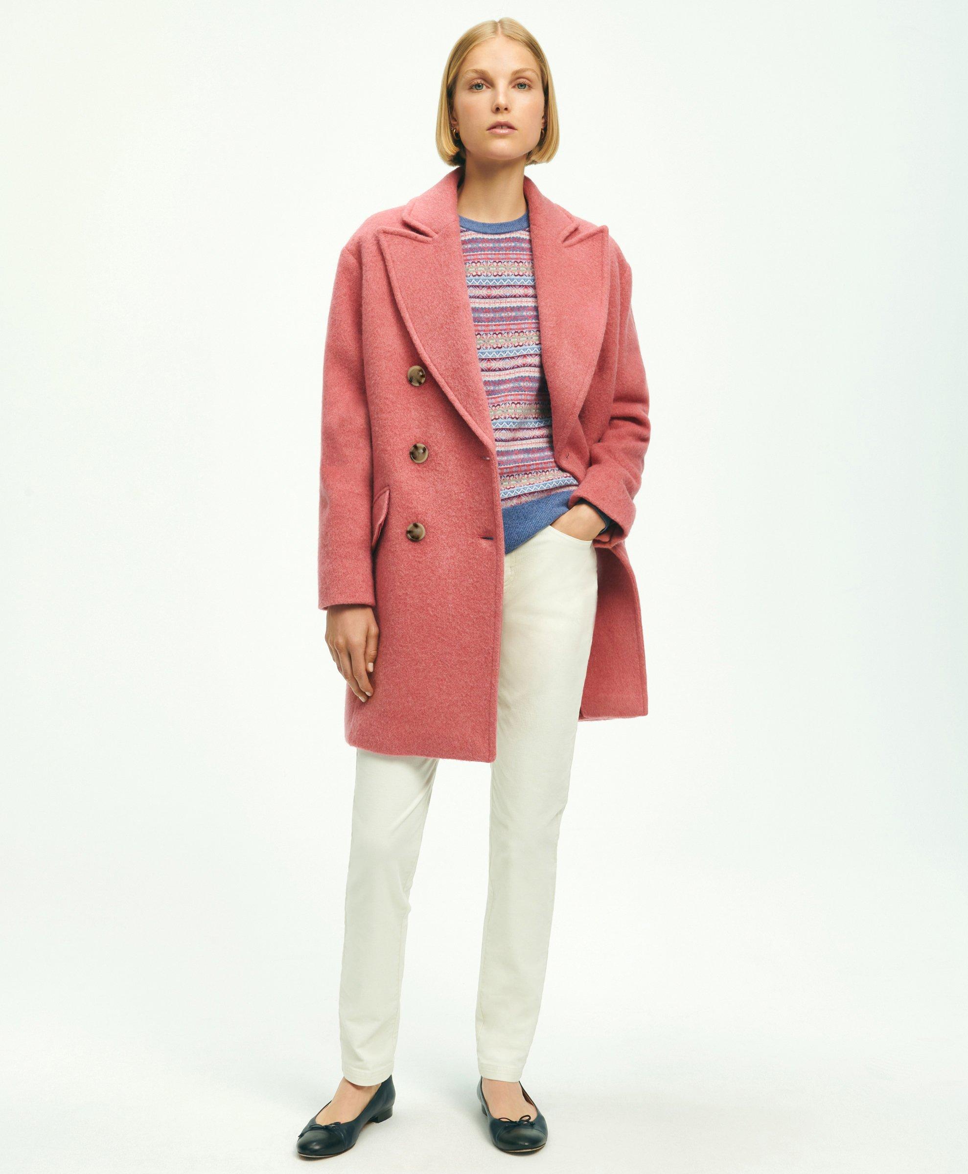 Pink platinum pea clearance coat, Wool Blend Mohair Double Breasted Cocoon Coat clearance