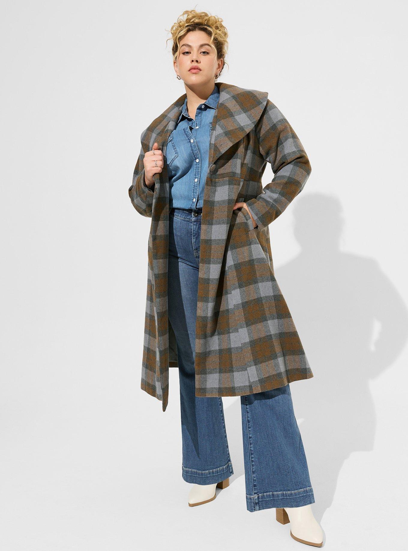 Plaid wool blend clearance coat, Plaid Wool Blend Robe Coat Nasty Gal clearance