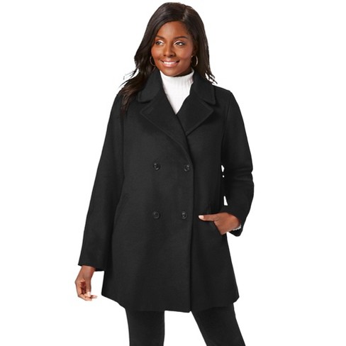 Jessica London Women s Plus Size A Line Wool Peacoat 12 Black