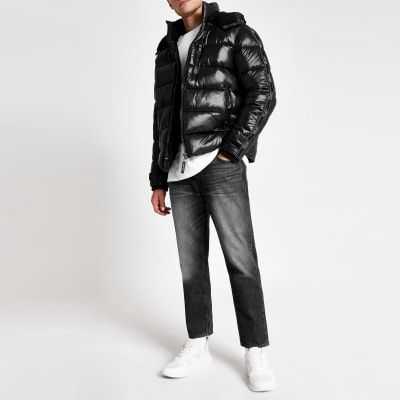 Prolific Black Tape Hooded Puffer Jacket from River Island on 21