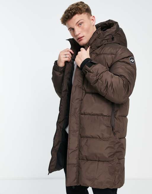 Pull Bear long line puffer coat in brown