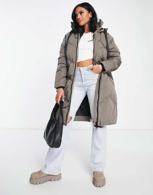 Qed london puffer clearance jacket, QED London longline puffer coat in mink clearance