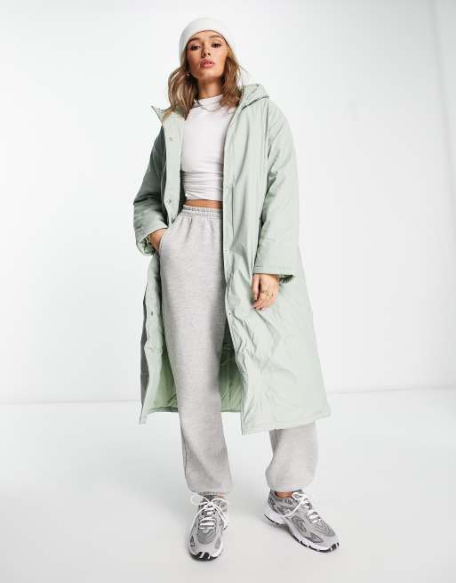 Rain clearance coat asos, ASOS DESIGN heavyweight rubberized padded rain coat in sage clearance