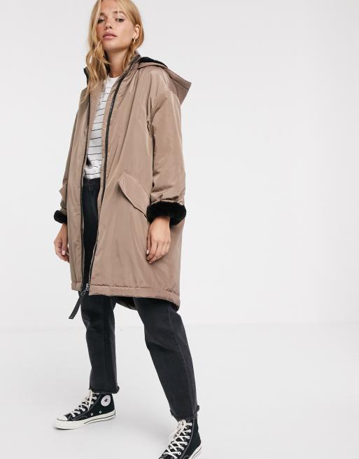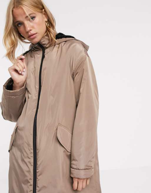 ASOS DESIGN faux fur lined raincoat in mink ASOS