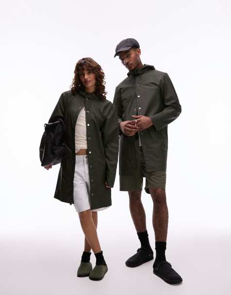 Rains Long Waterproof Jacket in Khaki Long rain coat Raincoat