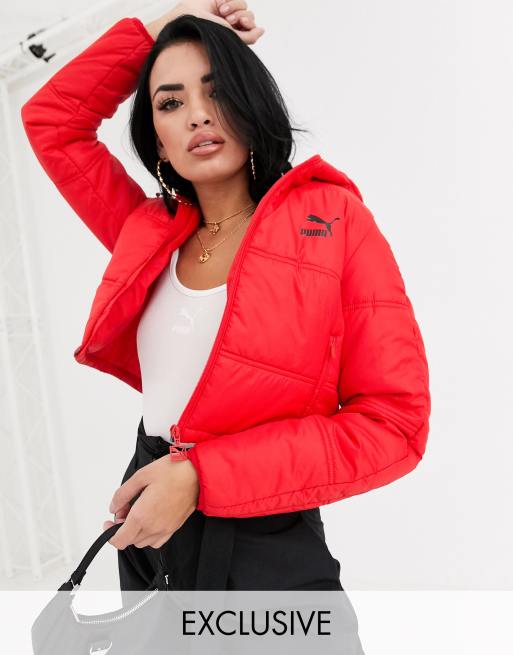 Red cropped puffer clearance jacket with hood, Love Sports Women s Cropped Puffer Jacket with Hood clearance