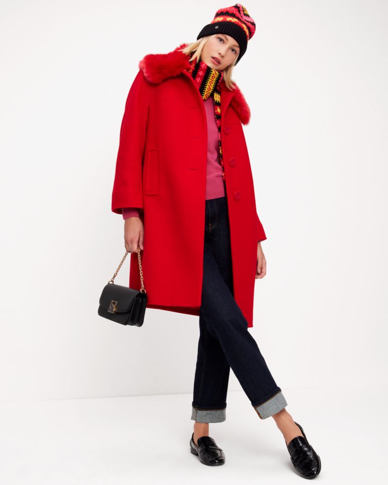 Red wool coat clearance with fur collar, Cindy Classic Vegan Coat in Red NONAT clearance