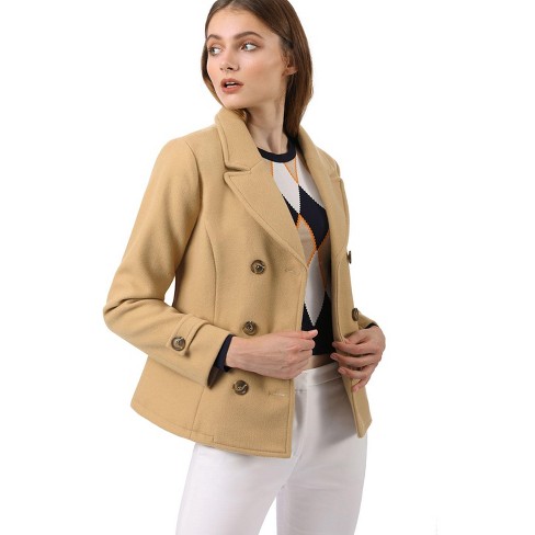 Allegra K Women s Notched Lapel Double Breasted Pea Coat Khaki X Large