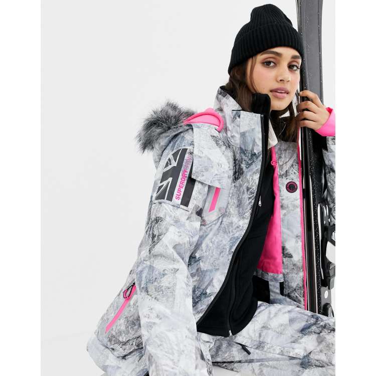 Superdry ultimate snow clearance action jacket, Superdry snow ski jacket with logo and contrast internal in multi print clearance