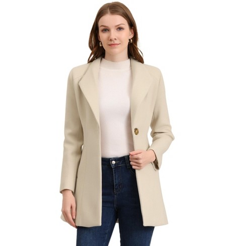 Allegra K Women s Turn Down Collar Buttoned Business Casual Mid Long Winter Coat Beige Small