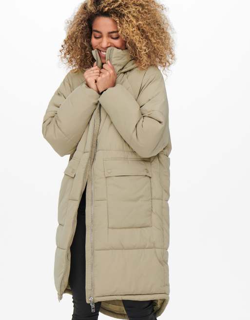 Taupe clearance puffer coat, Only padded puffer coat with hood in taupe ASOS clearance