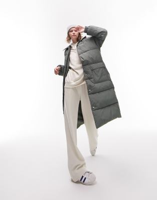 Topshop Longline Puffer Jacket In Sage green ModeSens