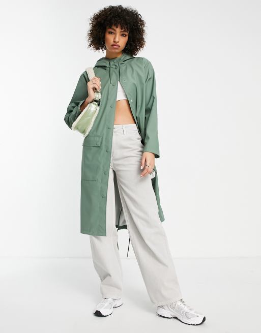 Topshop mid length rain jacket with hood in sage