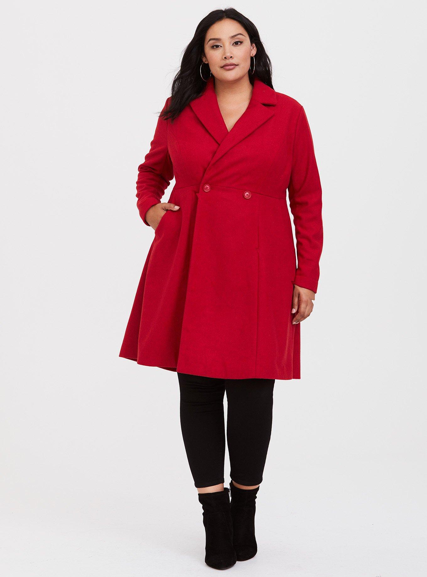 Plus Size Wool Zip Front Fit And Flare Coat Torrid