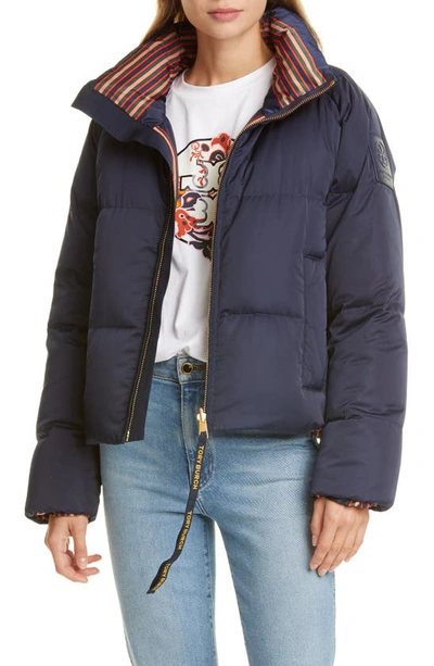 Tory Burch Floral Reversible Puffer Jacket In Tory Navy Navy